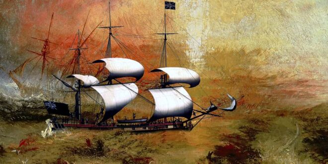 Trente ans après l’abolition de la traite négrière par le Royaume-Uni, le peintre britannique J. M. W. Turner donne à l’art du paysage une ampleur inédite. Il peint de sa touche tourmentée le portrait d’une Angleterre embrassant les nouveaux paradigmes économiques et scientifiques de la révolution industrielle, prémices d’une future mondialisation aux chaînes non moins sanglantes.
