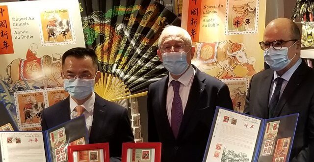 La Poste de France célèbre le Nouvel An du calendrier lunaire chinois avec deux blocs de timbres consacrés à “l’Année du Buffle”, et une cérémonie d’émission a été organisée le samedi 6 à Paris.